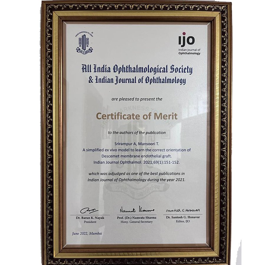 Faculty in Telangana Ophthalmic Society- Academic Research Committee.