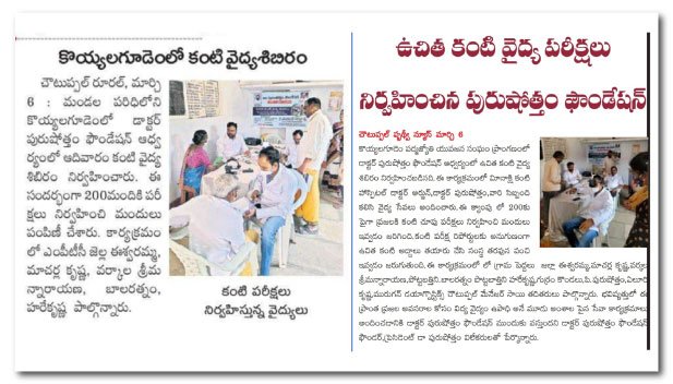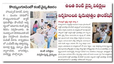 Free eye testing camp at village koyyalagudem, chotuppal mandal, Yadadri bhonagiri dist on 6 th March 2022. More than 200 patients are screened, free spectacles will be given to them ,free cataract surgeries will be done, to the deserved patients.